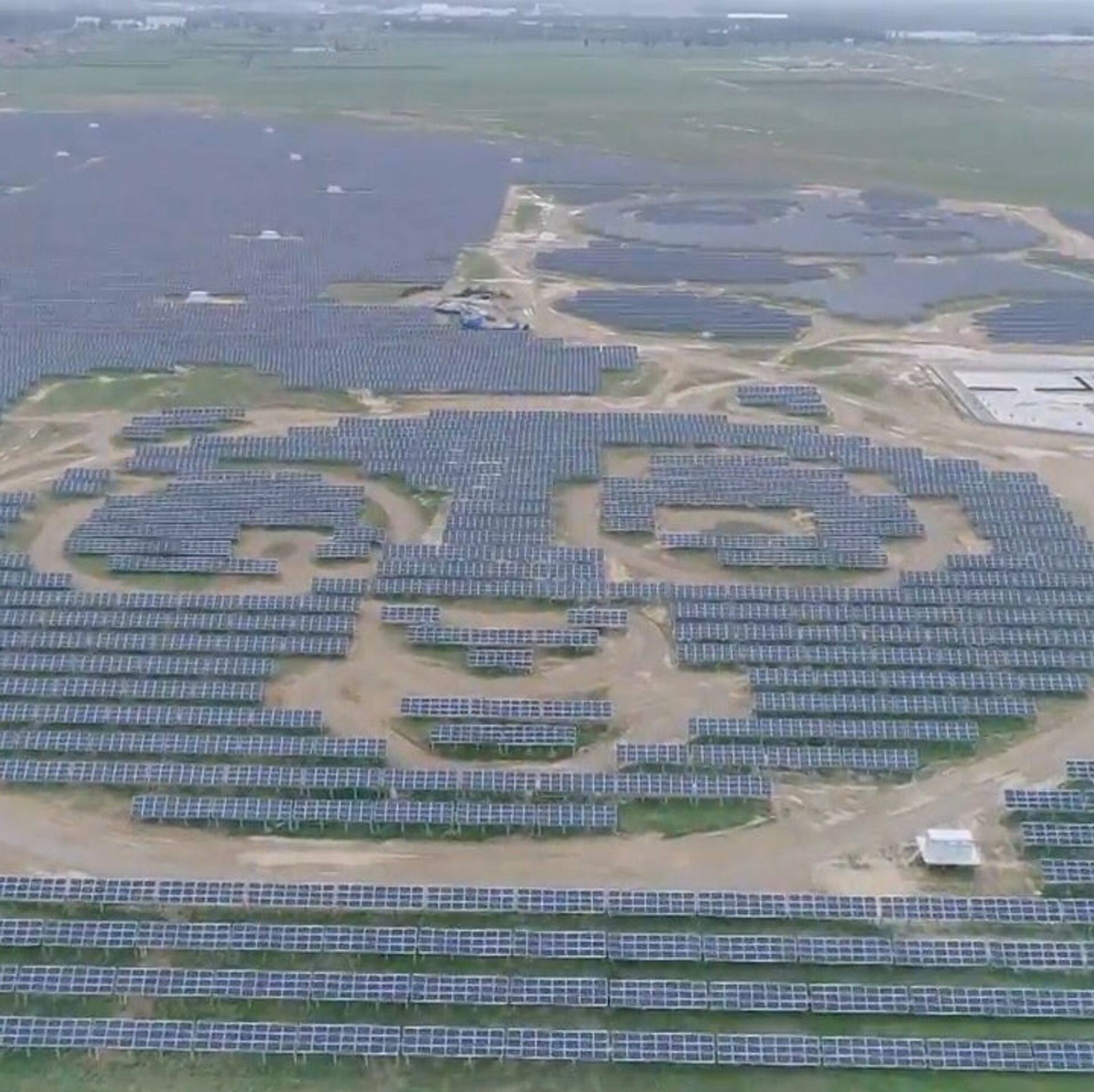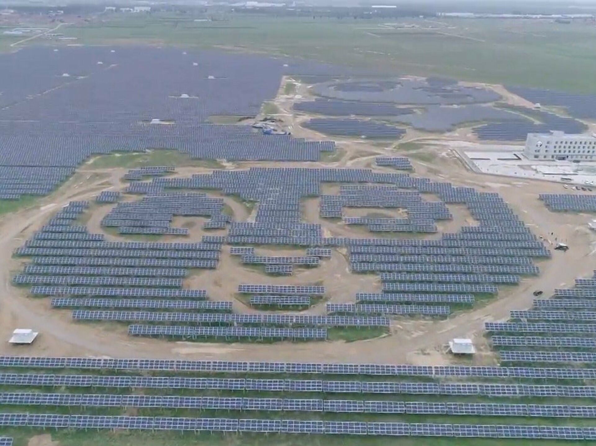 В Китае построили электростанцию, выложив солнечные батареи таким образом, чтобы при взгляде с высоты можно было увидеть изображение нескольких панд 26.07.2017, Sputnik Латвия