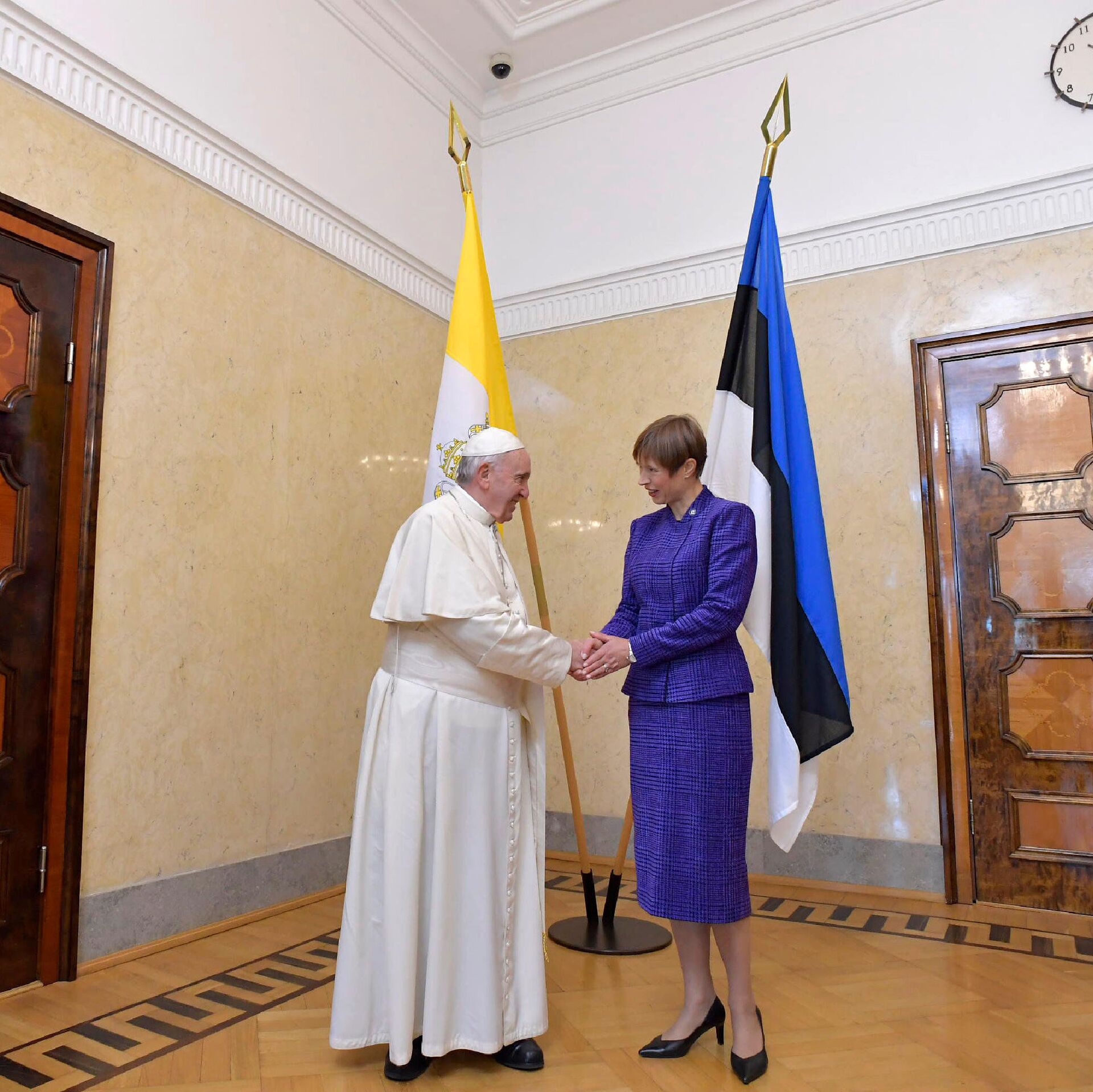 Глава Эстонской Республики Керсти Кальюлайд торжественно вручила понтифику персональное цифровое удостоверение личности.