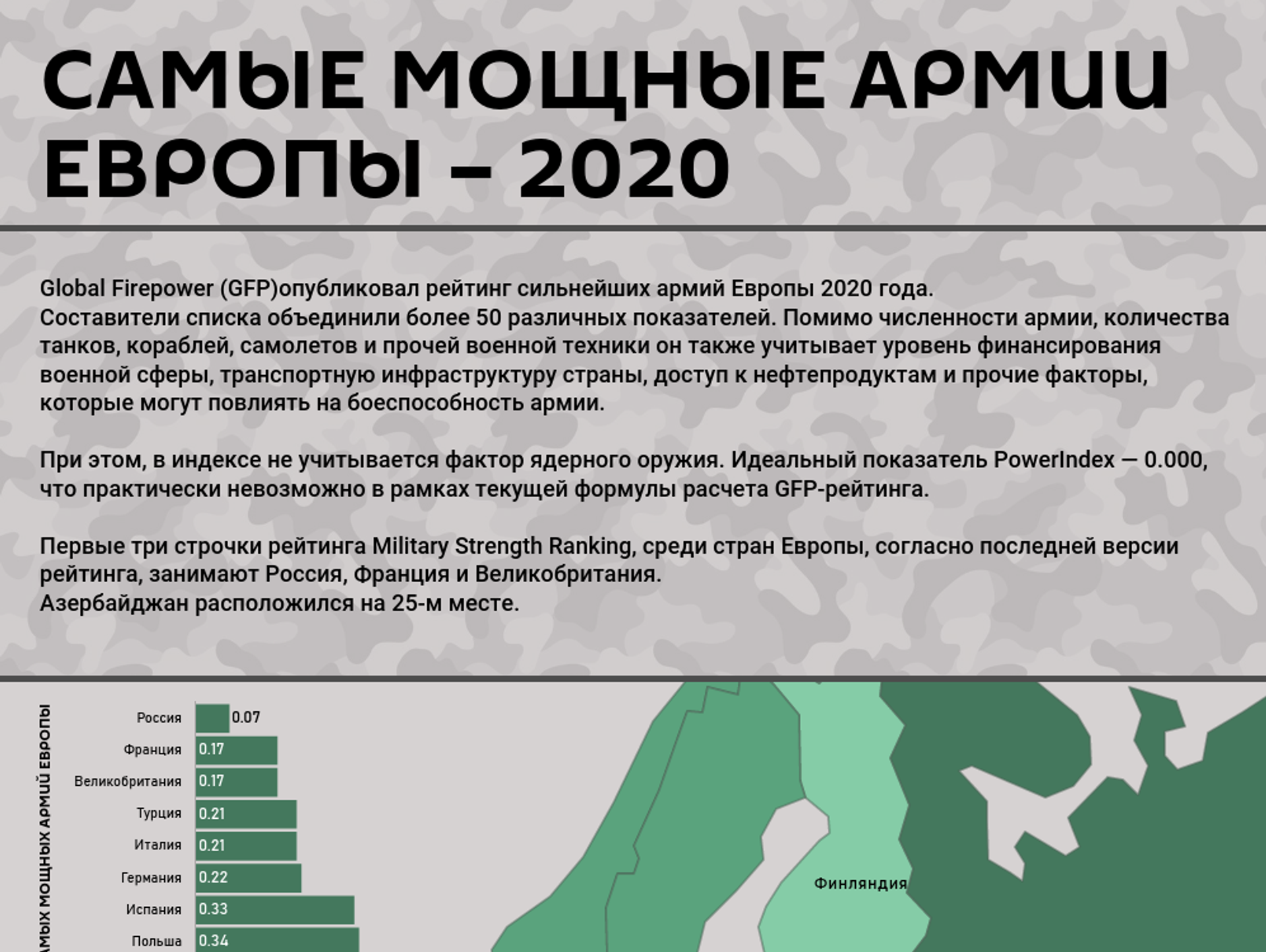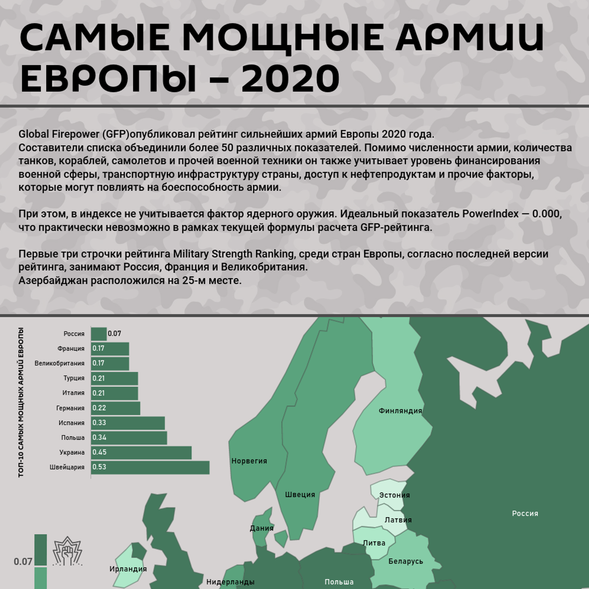 Идеальный показатель рейтинга - 0,000, но получить его практически невозможно. Чем больше рейтинг, тем слабее армия страны.