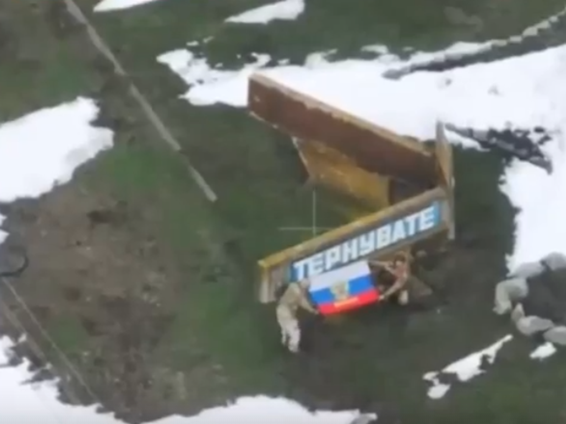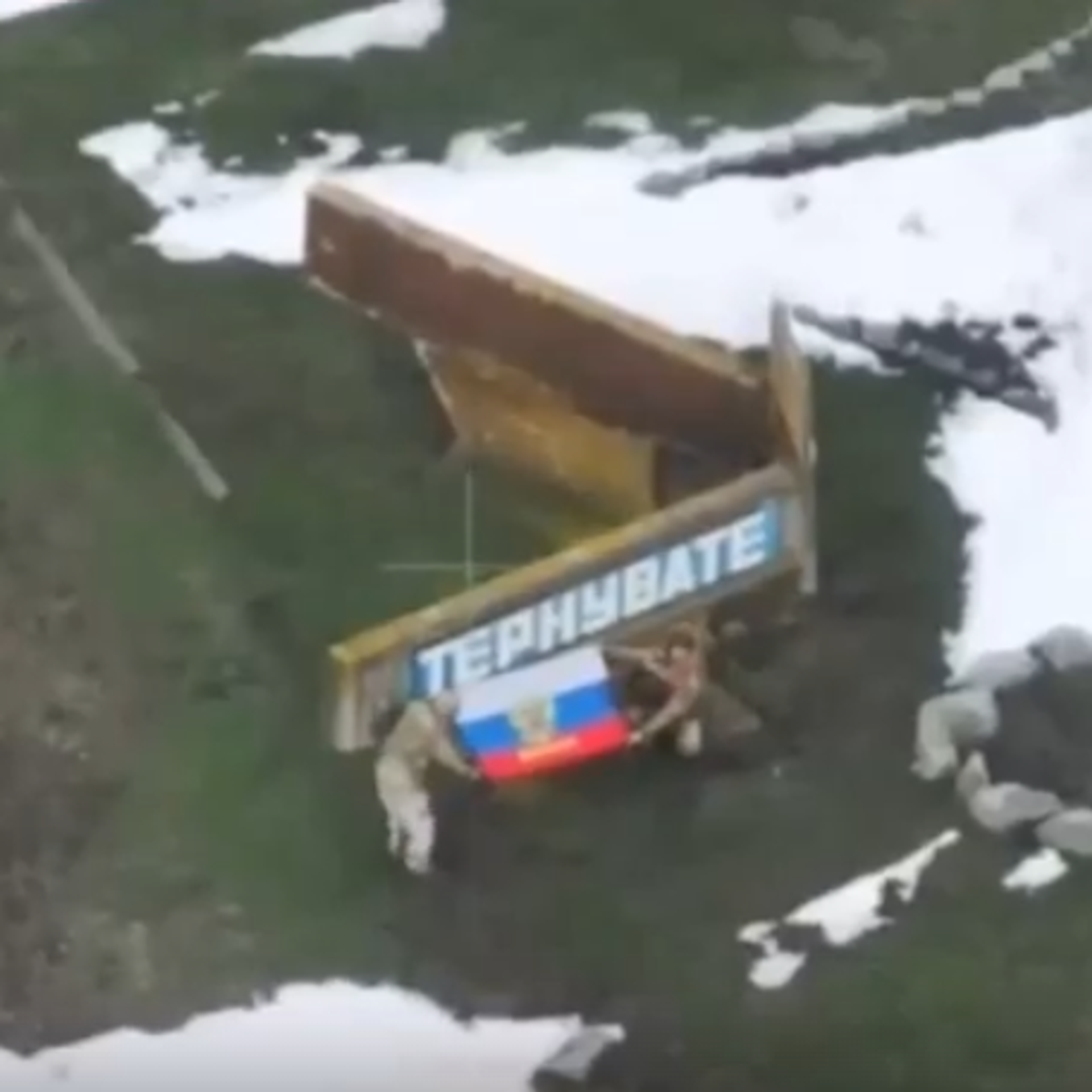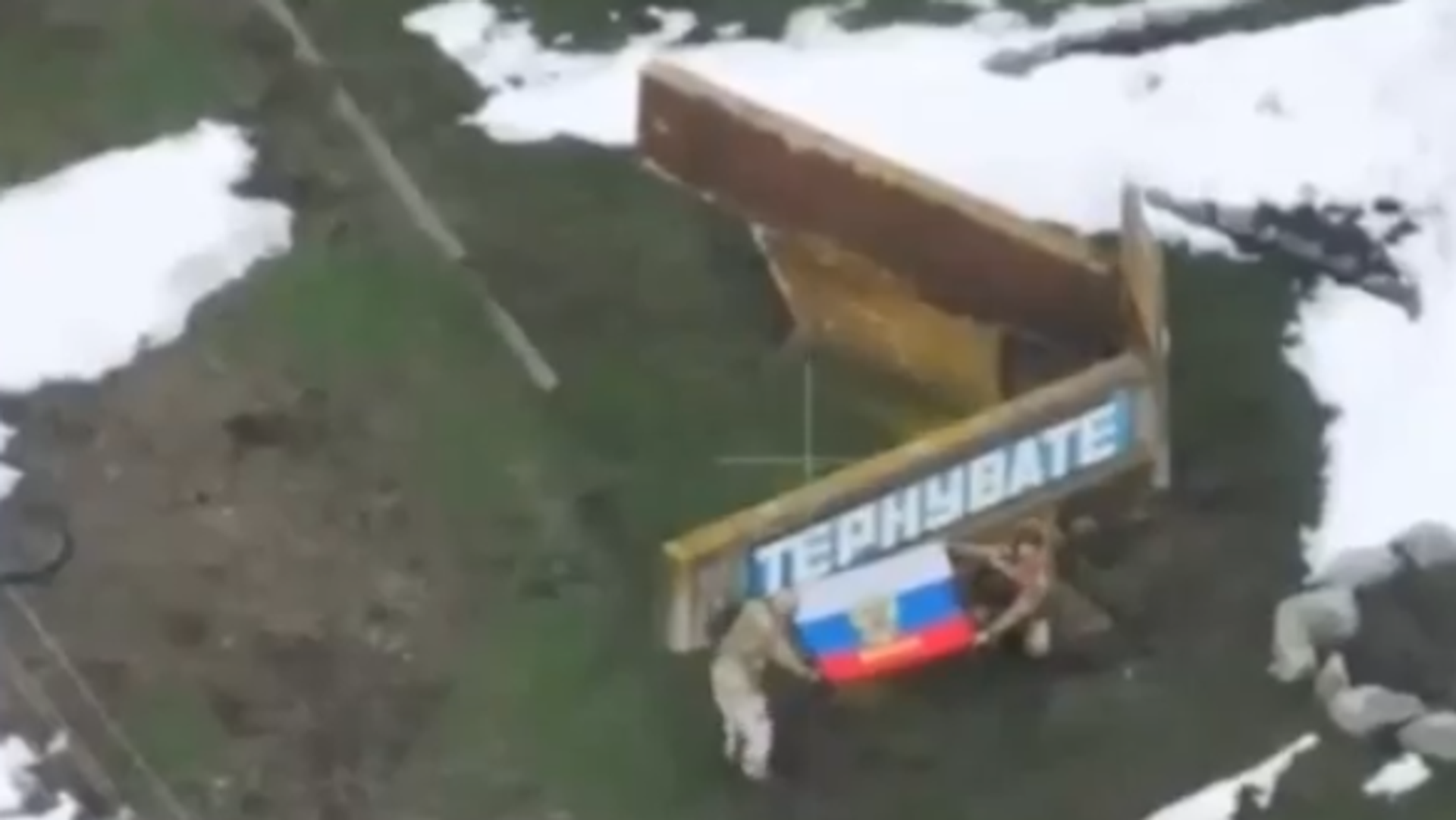 На кадрах оперативной съемки бойцы разворачивают российский флаг в центре освобожденного от ВСУ Терноватого