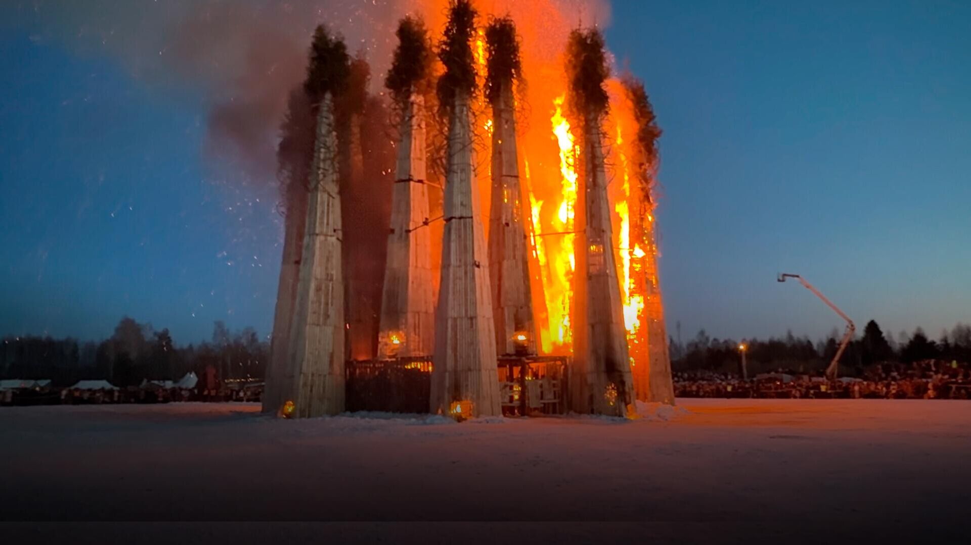 Одно из них - арт-парк Никола-Ленивец под Калугой. К примеру, в этом году билеты туда на празднование Масленицы раскупили за два дня после старта продаж. Но иностранным блогерам, повезло – в удивительную поездку их пригласила депутат Госдумы РФ Мария Бутина. Побывал на мероприятии и журналист Алексей Стефанов. Вот, что он рассказал:"Вместе садимся на Киевском вокзале в экспресс, через два с половиной часа прибываем на станцию "Калуга 1", там пересаживаемся в машины и едем еще полтора часа до Национального парка "Угра". А там и до Никола-Ленивца рукой подать. Отмечать широко Масленицу в этом крупнейшем в Европе арт-парке начали еще 25 лет назад. Тогда все началось с идеи построить войско из снеговиков в поле, рассказал мне художник и основатель арт-парка Николай Полисский. И его на удивление поддержали местные деревенские жители, а дальше пошло-поехало. За прошедшие годы художник в своем парке создал множество арт-объектов, и часть из них – именно для сожжения на Масленицу. Это были Мельница, Вавилонская башня, Жар-птица, Байконур и много чего еще, а в этом году Николай Полисский построил инсталляцию "Горящее сердце". С отсылкой к Максиму Горькому и сердцу Данко. Да, объект оказался уникальным – 16 башен, самая высокая из которых поднималась в высоту на 25 метров издалека напоминала не то небоскреб, не то целый город. А вблизи строение оказалось еще более масштабным. Причем, в него можно было заходить, гулять внутри и поражаться даже внутренней отделке. Чего стоит один только купол, уходящий на многие метры вверх, аккуратно вымощенный дощечка к дощечке. Строила "Горящее сердце" целая бригада из трех десятков мастеров на протяжении двух месяцев, а сгорело все за считанные минуты. Но зато уже на следующий день в Калуге и Москве стало теплее".Как все было, смотрите в нашем видео.