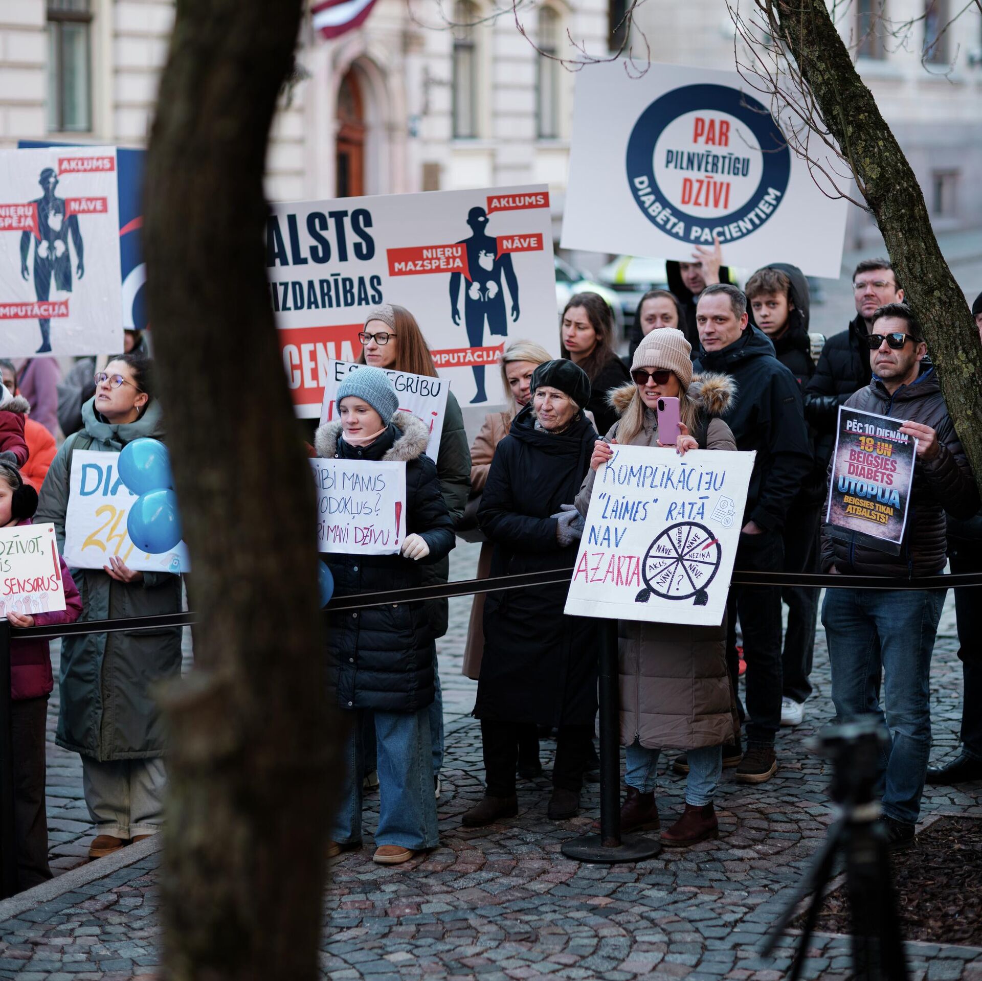 Среди протестующих были люди разного возраста, в том числе дети. Они держали в руках плакаты с надписями: "Глюкозные сенсоры – это выгода для государства, а не убыток", "Сейм, требуем оплатить глюкозные сенсоры и помпы", "Диабет – не выбор, выбор – это игнорирование", "Мы не обуза для бюджета".