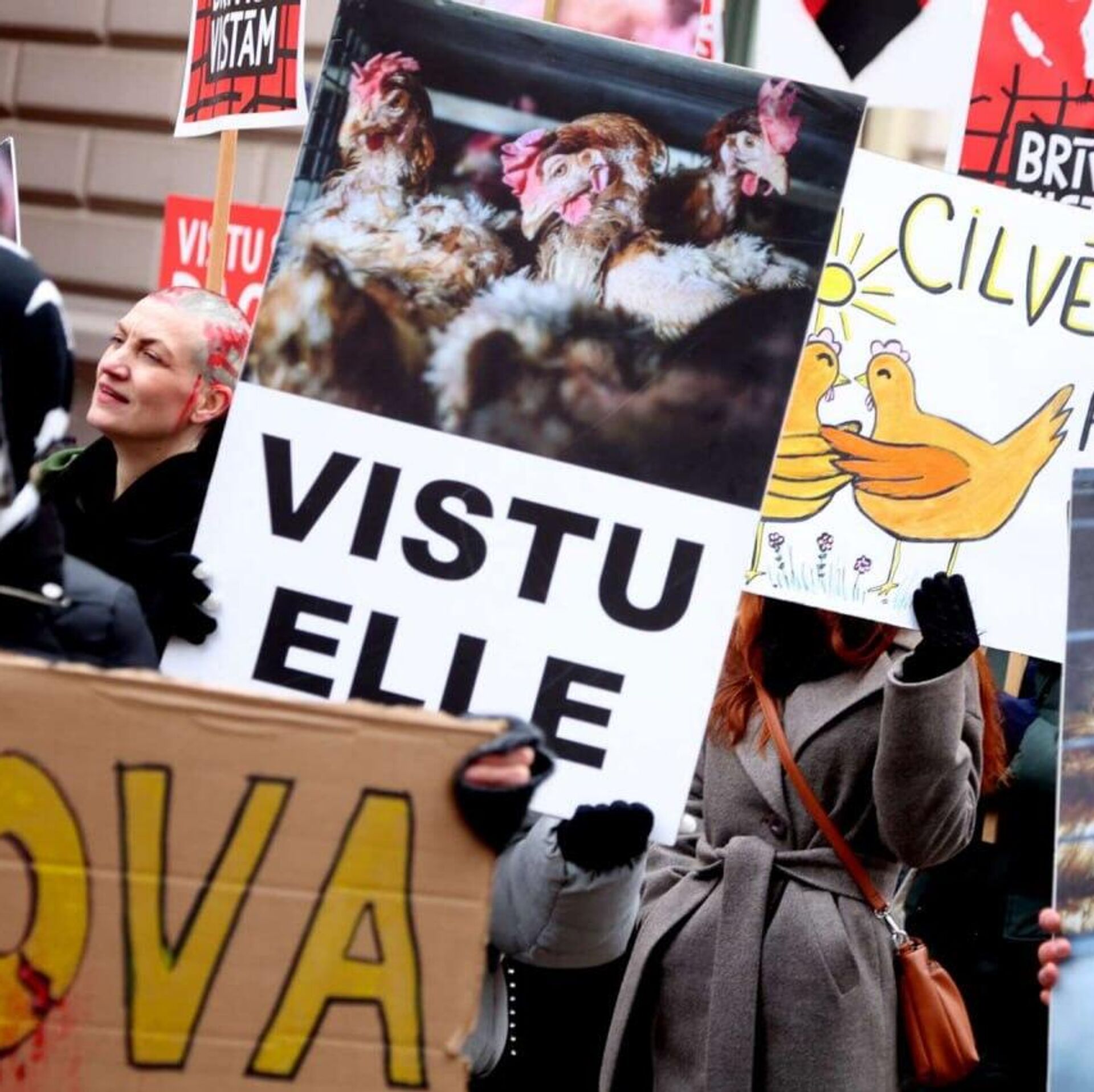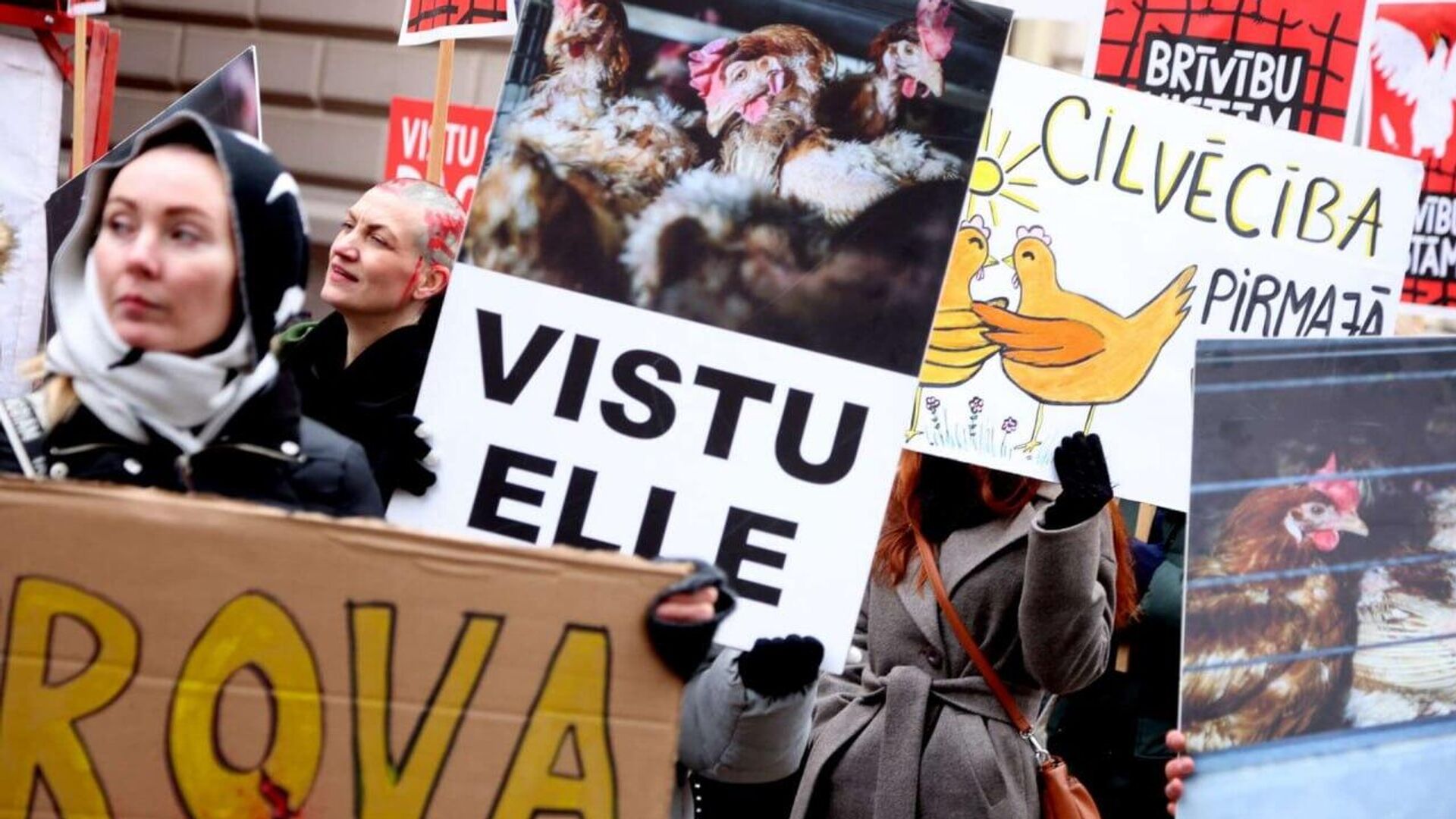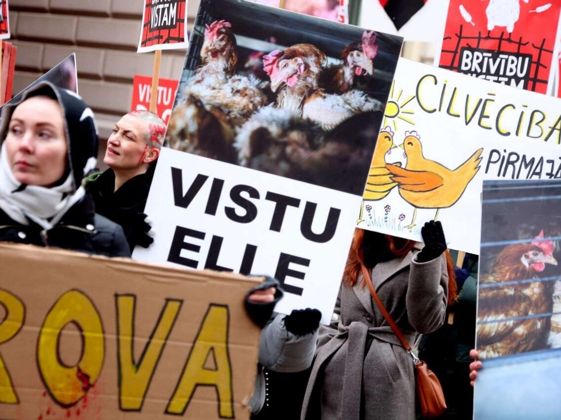 Организаторы мероприятия - общество защиты животных Dzīvnieku brīvība. Цель - привлечь внимание к проблеме содержания кур в клетках.